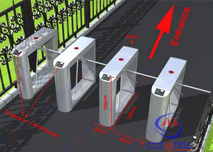 ประตูหมุนแบบขาตั้งกล้องอิเล็กทรอนิกส์ควบคุมการเข้าออกอาคารสำนักงานพร้อมเครื่องอ่านลายนิ้วมือ RFID