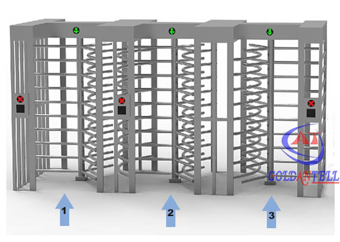 ประตูหมุนแบบเต็มความสูง 3 ช่องทาง 2250 มม. เครื่องสแกนใบหน้าไบโอเมตริกพร้อมตัวนับ LED
