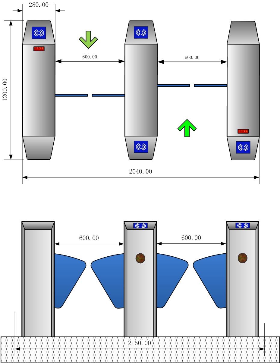 ความสูงของเอวประตูรั้วสเตนเลสแบบสองทิศทาง, RFID Car Automatic Flap Barrier